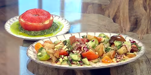 Panzanella salad with stuffed tomato and anchovy dressing