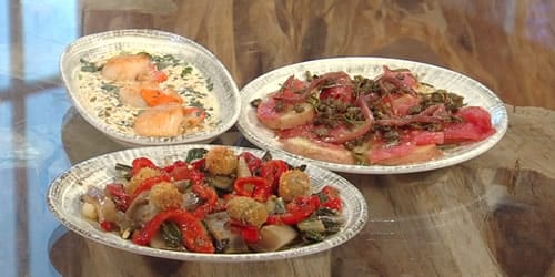5. Create a simple dressing by combining the warm, infused oil from the pan with red wine vinegar and oregano. Spoon this mixture over the assembled dish to add a final layer of Mediterranean flavour.