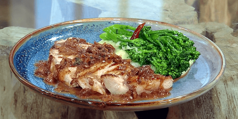 Tender veal loin steaks served with a luxurious porcini mushroom sauce, creamy red potato purée, and garlicky Tenderstem broccoli. It perfectly balances rich, earthy mushroom flavours with smooth potatoes and vibrant, subtly spiced greens, making it an elegant and satisfying meal ideal for a special Sunday lunch.